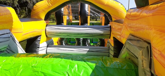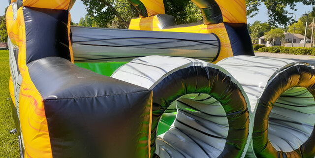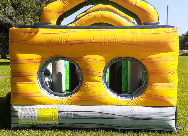 This obstacle course offers great open sight lines and the netting is clear and easy to see through. You will have great views of the kids playing inside and be able to easily keep a close eye on them. The slides on our obstacle courses, on both wet and dry units, will have extended landing areas or landing pools. This will keep your kids safe when coming down the slides. All obstacle are enclosed with high sides or mesh for safety. This will keep people going through the course, stay ON the course, and safe from falling out. Our inflatables are always cleaned and sanitized after every rental. Your kids will play in a unit you can be assured is up to your standard of clean. This cleaning standard will also keep the colors on the inflatable bright. This will make your event come alive once we set up the inflatable. Our inflatable will be the highlight of your party and the highlight of your kids day. This unit features large areas that will provide plenty of room for your kids to jump, tumble, laugh, and play with all their friends.