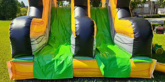 This obstacle course offers great open sight lines and the netting is clear and easy to see through. You will have great views of the kids playing inside and be able to easily keep a close eye on them. The slides on our obstacle courses, on both wet and dry units, will have extended landing areas or landing pools. This will keep your kids safe when coming down the slides. All obstacle are enclosed with high sides or mesh for safety. This will keep people going through the course, stay ON the course, and safe from falling out. Our inflatables are always cleaned and sanitized after every rental. Your kids will play in a unit you can be assured is up to your standard of clean. This cleaning standard will also keep the colors on the inflatable bright. This will make your event come alive once we set up the inflatable. Our inflatable will be the highlight of your party and the highlight of your kids day. This unit features large areas that will provide plenty of room for your kids to jump, tumble, laugh, and play with all their friends.